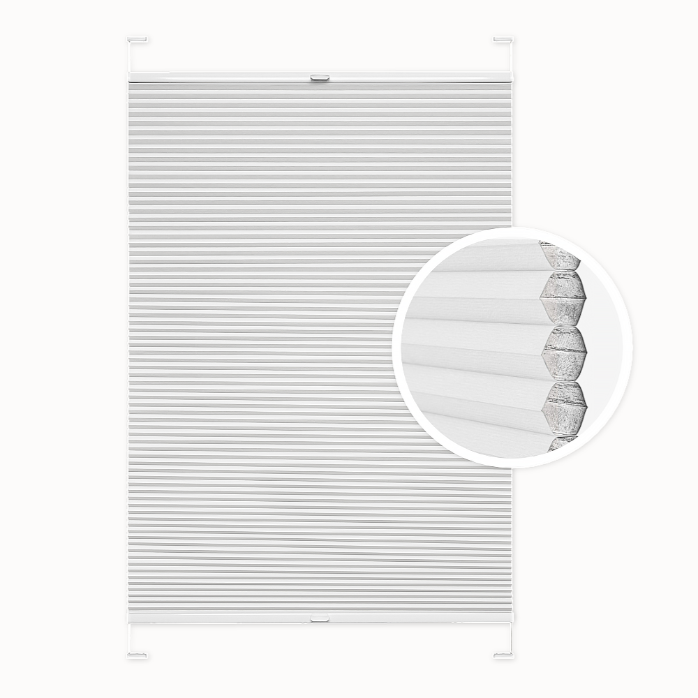 Plisa okienna plaster miodu (honeycomb). Kolor szaro-biały. Montaż inwazyjny lub bezinwazyjny. Na wymiar. Szrokość: 30-130 cm. Wysokość: 40-230 cm. Zaciemnienie: 100%.