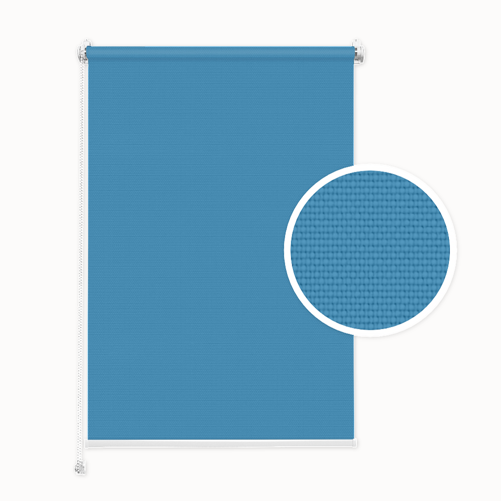 Roleta mini. Kolor błękitna laguna. Montaż bezinwazyjny. Na wymiar. Szerokość: 30-150 cm. Wysokość: 150 lub 220 cm. Zaciemnienie: ok. 50%.